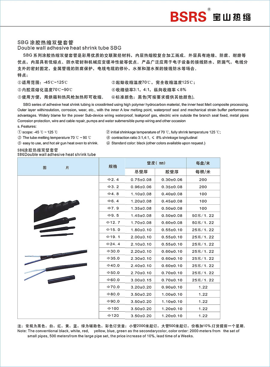 SBG涂胶热缩双壁套管